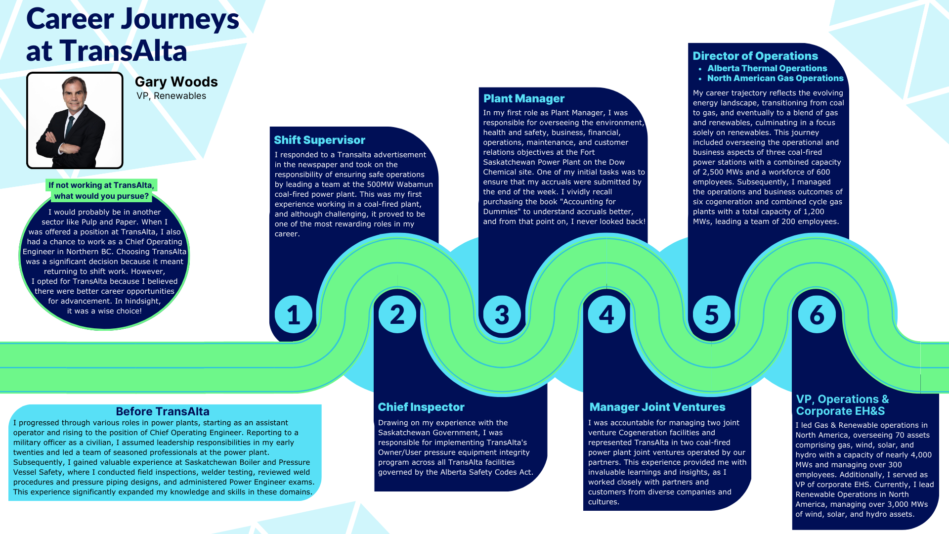 “My career trajectory reflects the evolving energy landscape, transitioning from coal to gas, and eventually to a blend of gas and renewables…”